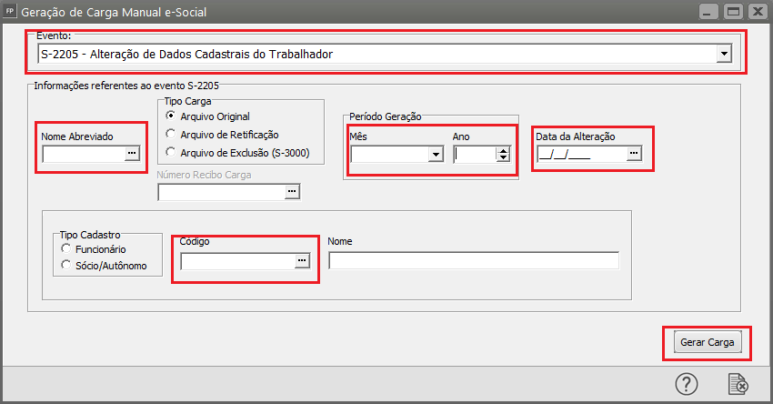 1º Opção - Envio dos dados por S2205 (Recomendado)