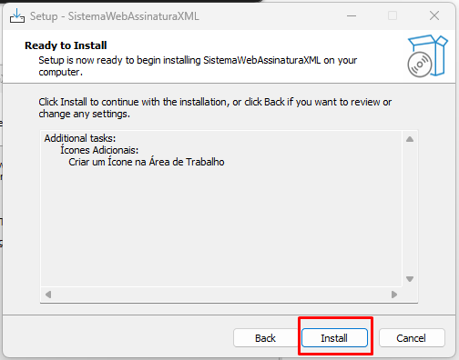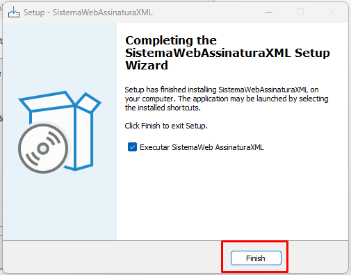 Após concluir a instalação será criado um atalho na área de trabalho "SistemaWebAssinaturaXML" para a execução do programa: