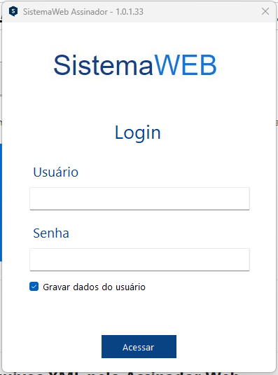 Execute o atalho "SistemaWebAssinaturaXML" e acesse com o mesmo e-mail e senha usados no acesso do Sistema Web: