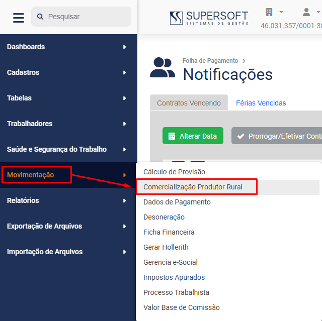 Para cadastrar a Comercialização do Produtor Rural você deverá acessar o menu Folha de Pagamento>Movimentação>Comercialização Produtor Rural