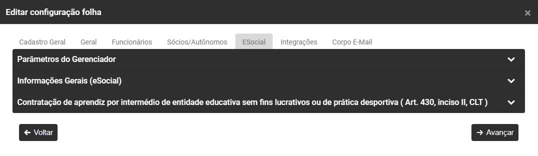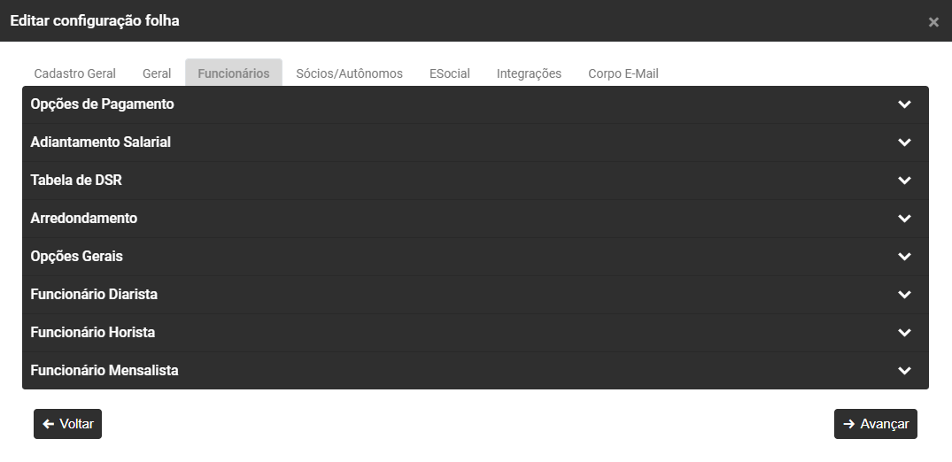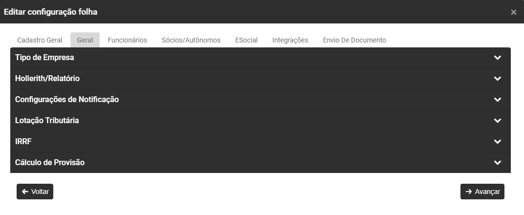 Em seguida, na tela de Configurações do Sistema, acesse a Aba Folha