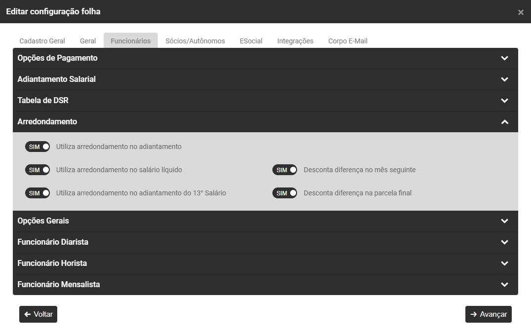 - Utiliza arredondamento no adiantamento salarial