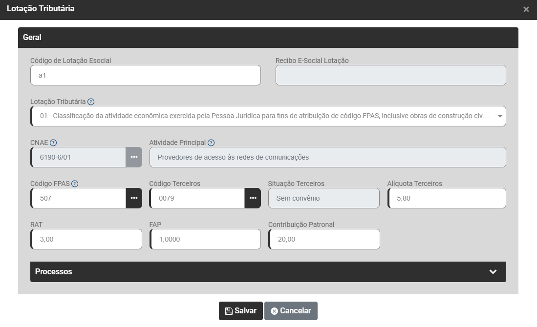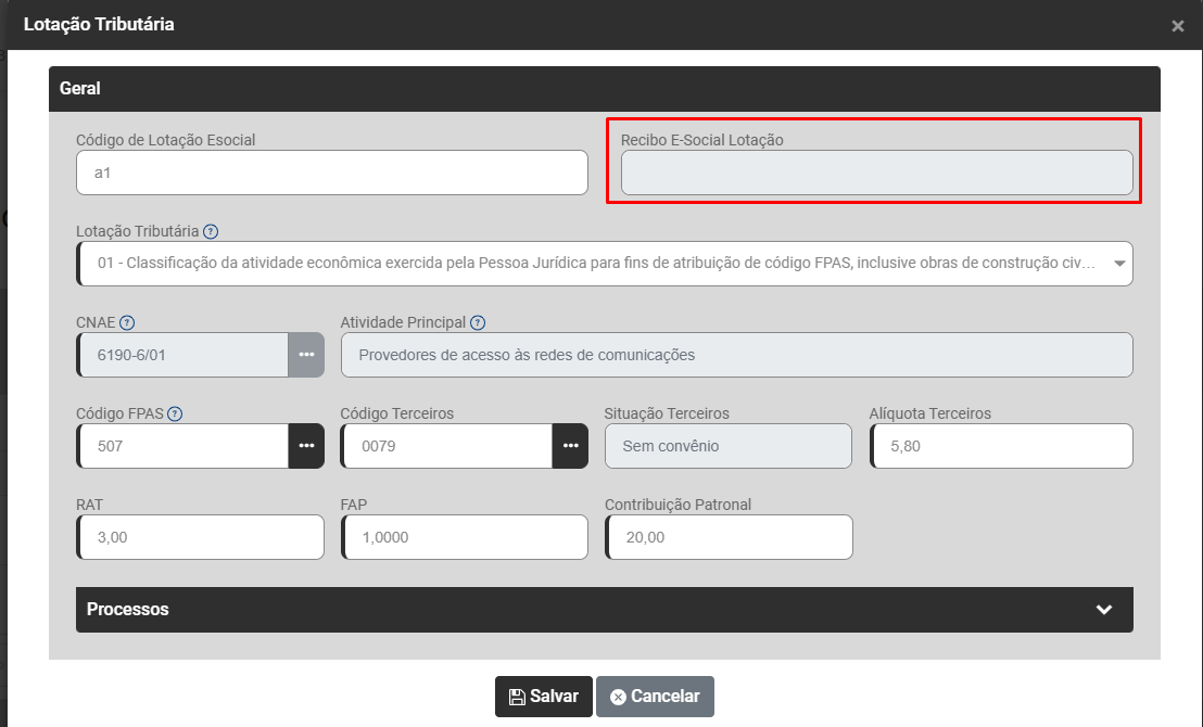 - Código da Lotação Esocial