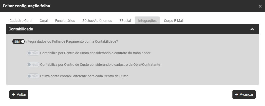 - Integra dados do Folha de Pagamento com a Contabilidade