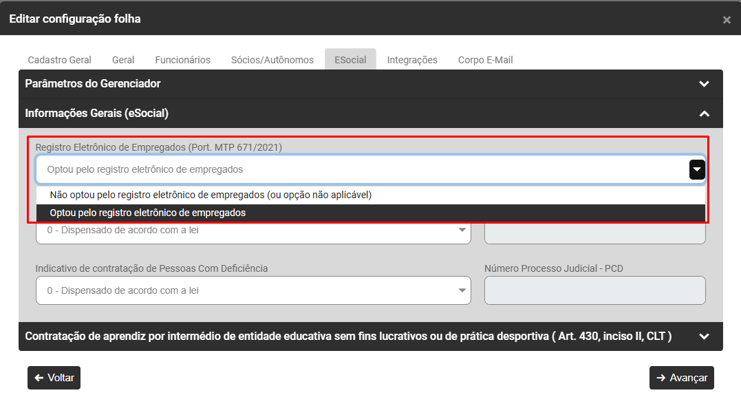 - Registro Eletrônico de Empregados (Portaria MTP 671/2021) - defina se a Empresa Optou ou não pelo registro eletrônico de empregados