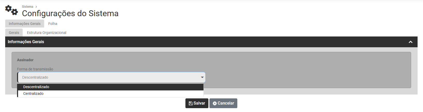 - Centralizado - será utilizada uma única instalação do Assinador