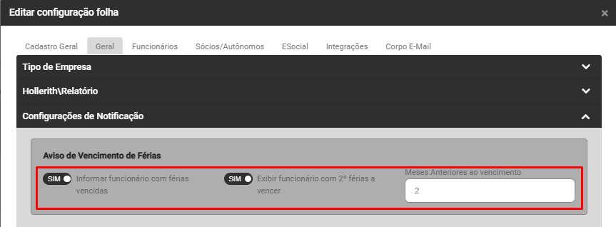 - Meses anteriores ao vencimento da 2º férias em que deve ocorrer a exibição do Sistema