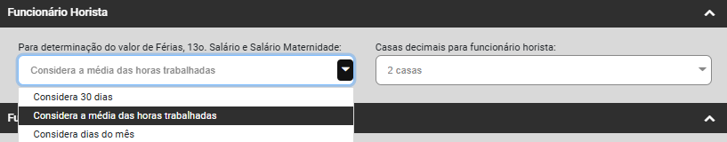 - Defina se para os funcionários horista deverá ser utilizada a quantidade de horas mês de contrato do mesmo