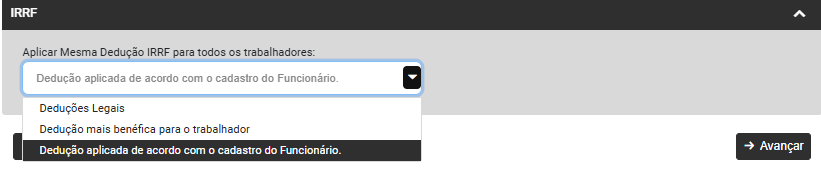 Defina se o cálculo do IRRF dos trabalhadores será considerando: