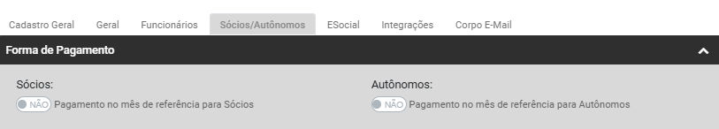 - Autônomos - defina se o Pagamento será no mês de referência, caso não seja definido o Módulo irá considerar pagamento no Quinto Dia Útil do mês subsequente