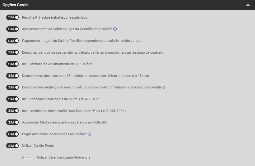 - Utilizar Cartão Ponto - Se for selecionada desabilitará a opção Utilizar Calendário para Referência