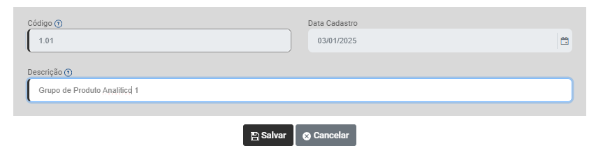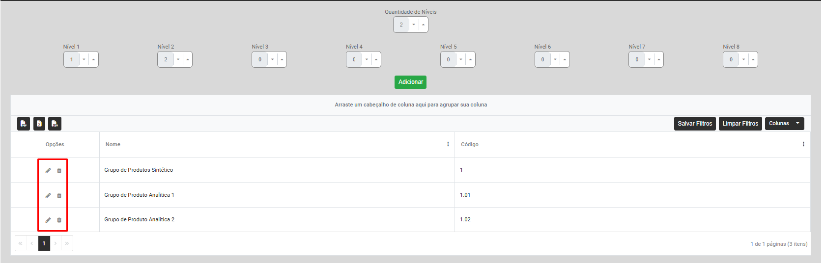Você deverá realizar o mesmo procedimento para todos os Grupos de Produtos Sintéticos e Analíticos de sua Empresa