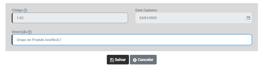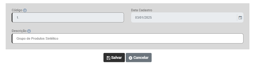 Ao Clicar no Botão Adicionar, o Módulo irá apresentar a tela para Cadastrar Grupo de Produtos