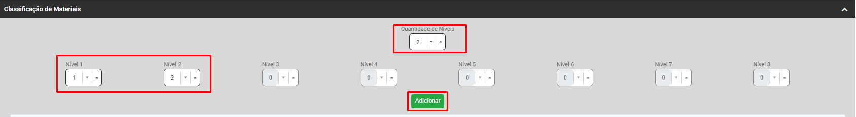 Quando você não define a quantidade total de níveis disponível, o próprio Módulo impede a indicação de quantidade de níveis e caracteres dos níveis que não serão utilizado