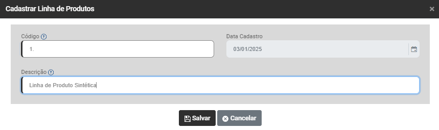 - LINHA DE PRODUTOS (utilização nos Módulos Compras, Estoque e Vendas)