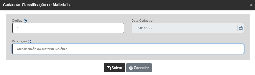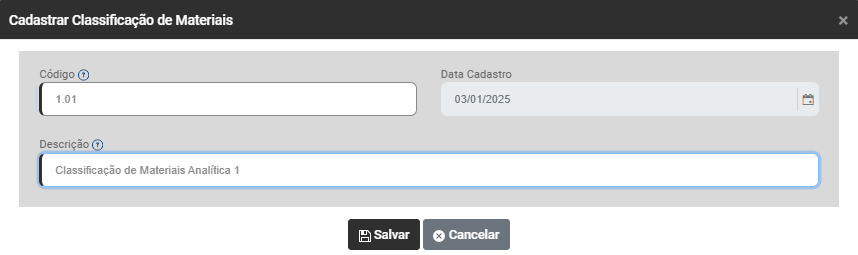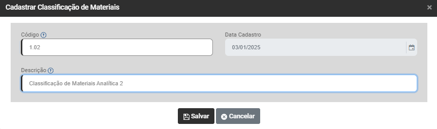 - Informe o Código de acordo com a Estrutura definida Anteriormente, no nosso caso com 1 caracter