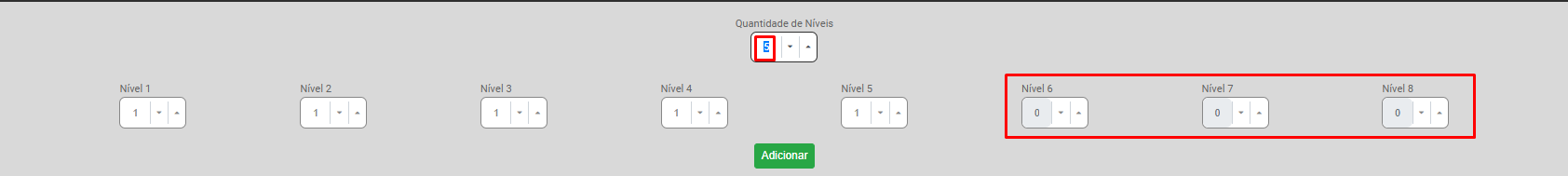 Quando você não define a quantidade total de níveis disponível (8), o próprio Módulo impede a indicação de quantidade de níveis e caracteres dos níveis que não serão utilizados