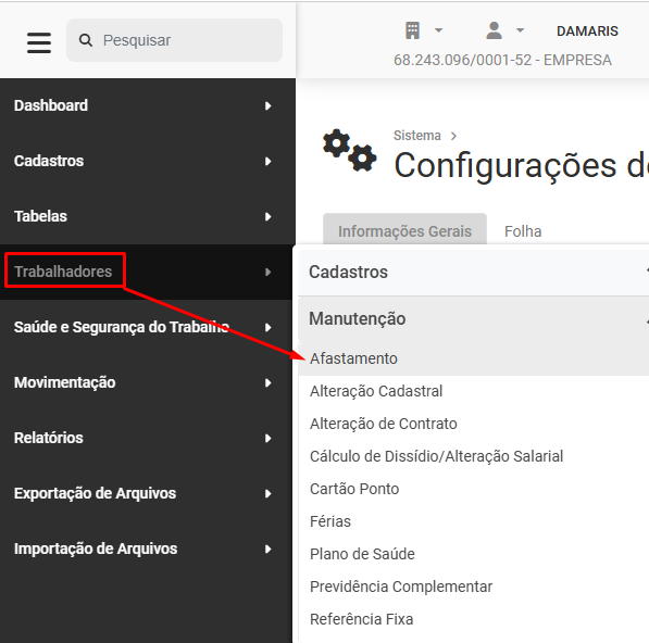 Para cadastrar os Afastamentos de sua Empresa acesse o menu Folha de Pagamento>Trabalhadores>Manutenção>Afastamento