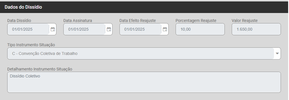 Dados do Dissídio
