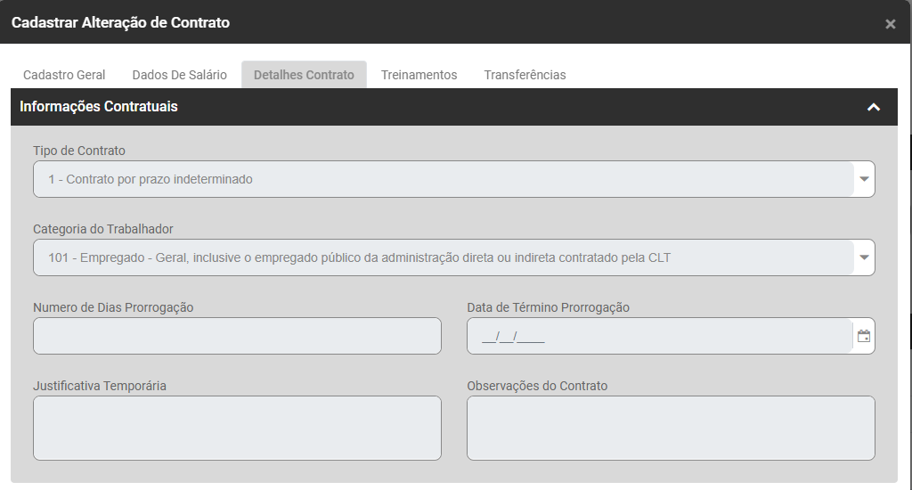- Cadastro de Alteração de Contrato