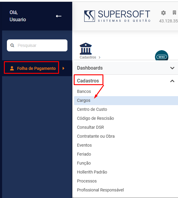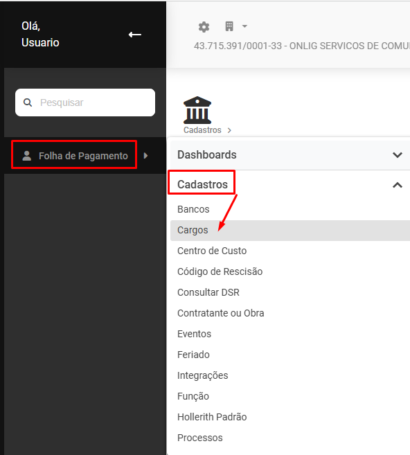 Para cadastrar os Cargos dos Trabalhadores de sua Empresa, acesse o menu Folha de Pagamento>Cadastros>Cargos