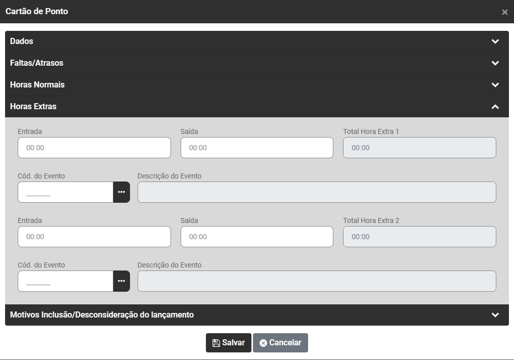 - Total Extra 2 - O Sistema irá totalizar as Horas Extras cadastradas