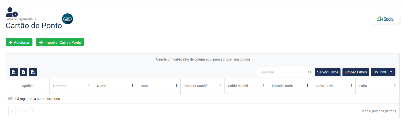 1) Para cadastrar um novo Cartão Ponto, acesse o botão Adicionar, existente na parte superior da tela