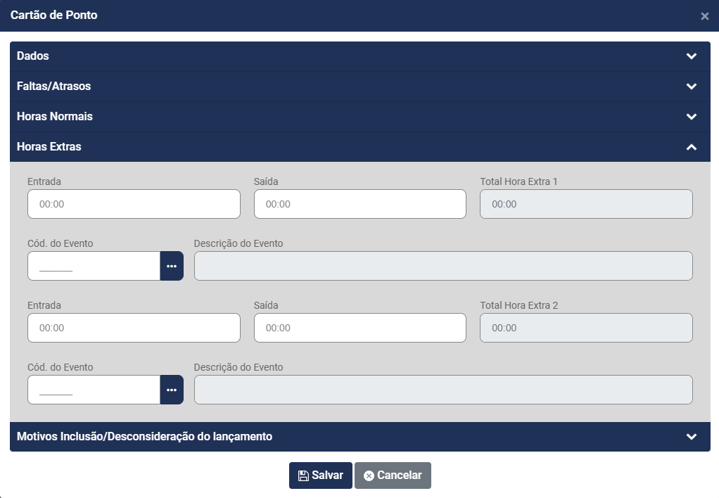 - Horas Extra - Entrada, Saída