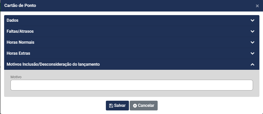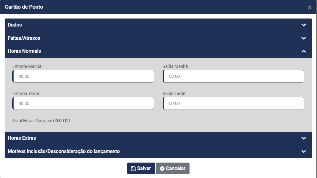 - Horas Normais - Entrada da Manhã, Saída da Manhã, Entrada Tarde, saída Tarde (campo obrigatório)