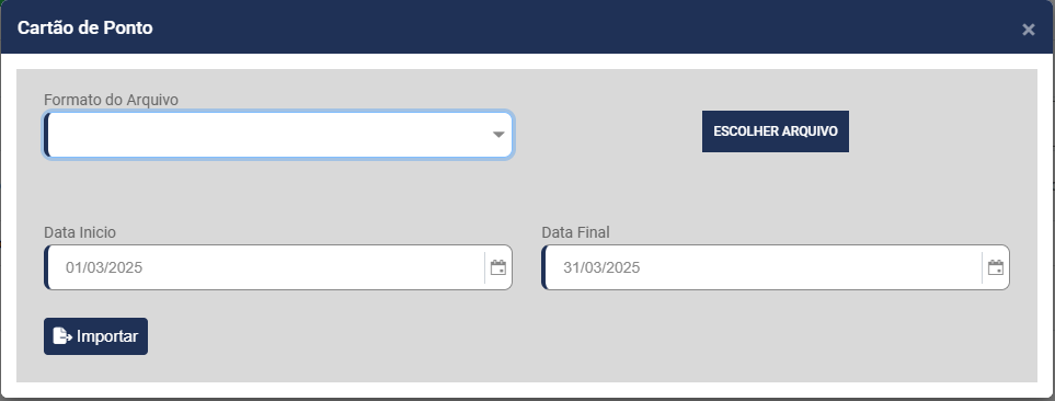 2) Para Importar o Arquivo do Cartão Ponto, acesse o botão Importar Cartão Ponto, existente na parte superior da tela