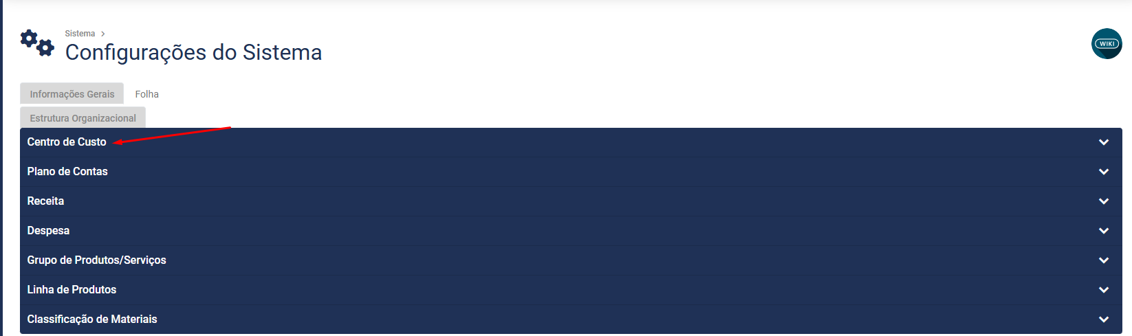 Cadastro de Centro de Custo