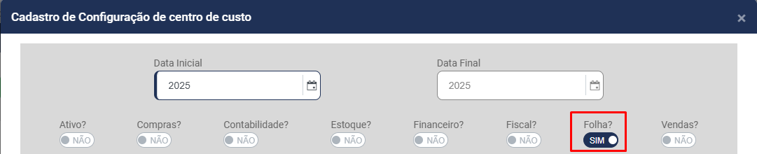 Para o Módulo Folha de Pagamento, será exigido o Centro de Custo na geração das informações dos funcionários definidos com Centro de Custo
