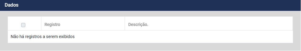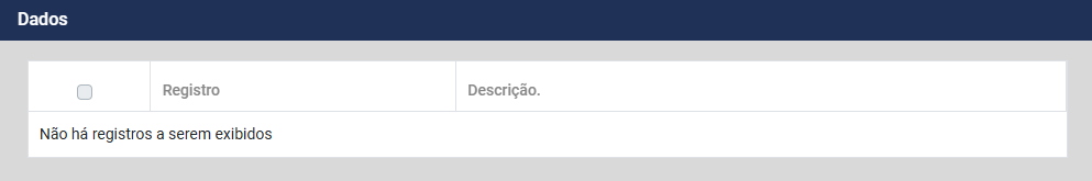 A tela apresentada trará o Grid com as informações cadastradas, contendo: