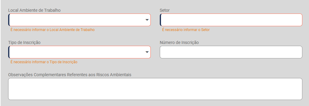 - Local do Ambiente de trabalho - Estabelecimento do próprio empregador ou Estabelecimento de terceiros