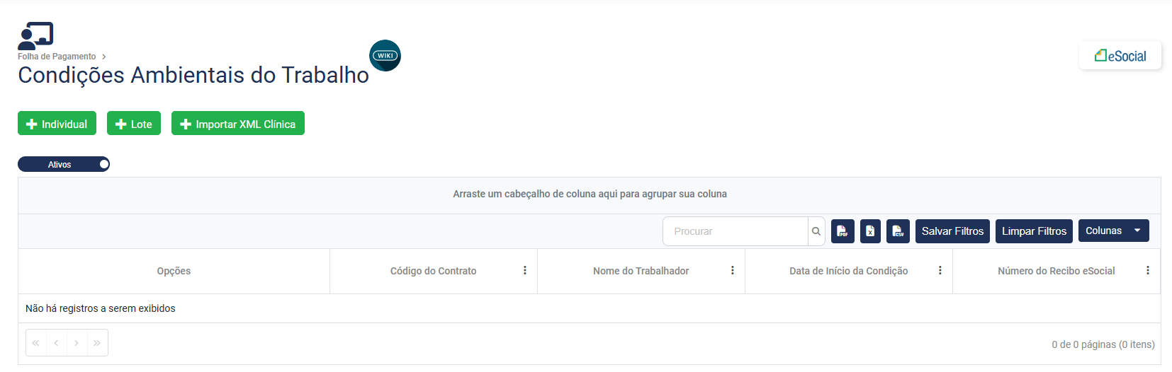 - Cadastro de Condições Ambientais do Trabalho em Lote