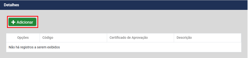 Ao clicar no botão Adicionar será apresenta a relação de EPI já cadastrados, contendo