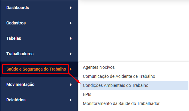 Cadastro de Agente NocivoCadastro de EPIs (Equipamento de Proteção Individual)Cadastro de Condições Ambientais do TrabalhoProfissionais Responsáveis