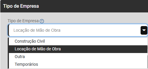 - Contratante - Tipo da Empresa for Locação de Mão de Obra ou Temporários