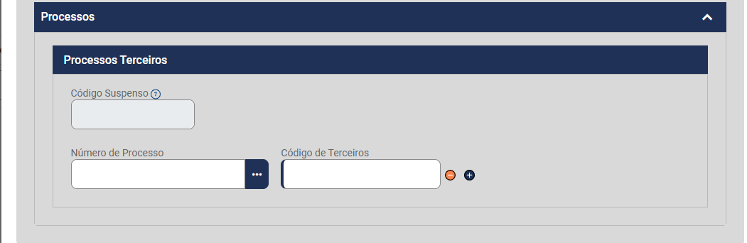 - Código de Terceiros - Você conseguirá incluir ou excluir processos através dos botões