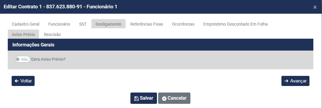 d.1) Aviso Prévio - defina se irá ou não Gerar Aviso Prévio