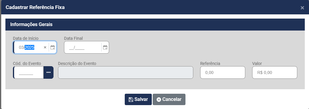 • Data Final - Ultimo Mês e Ano que a Referência Fixa será calculada para o trabalhador