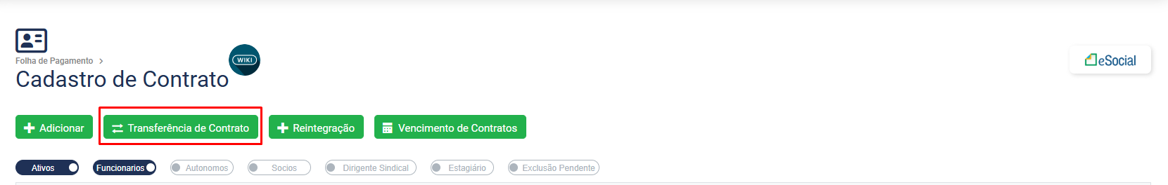 Quando houver a necessidade de transferir um funcionário você deverá acessar o botão Transferência de Contrato