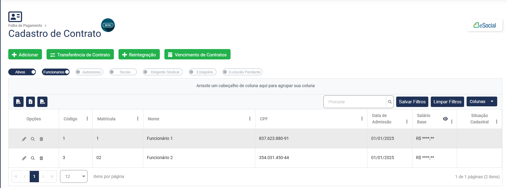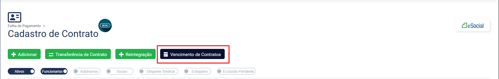 A partir do Filtro realizando anteriormente o Módulo trará no campo Contrato as informações do trabalhador
