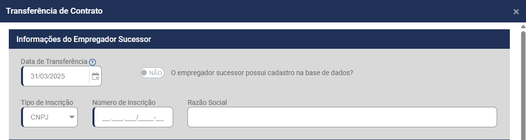 • O empregador sucessor possui cadastro na base de dados - sim/não