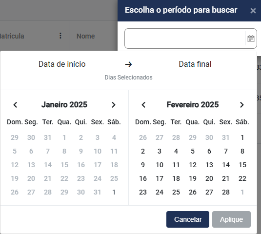 Em seguida informe a data inicial e final para a pesquisa e clique em Aplique