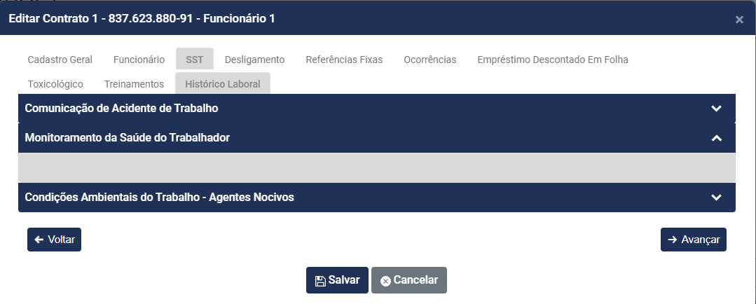 Esse campo será preenchido quando for Cadastrado o Monitoramento da Saúde do Trabalhador