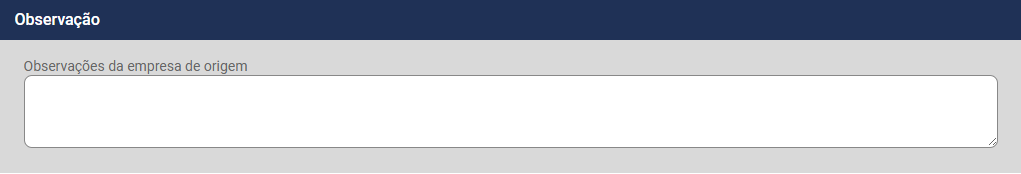 • Observações da empresa de Origem