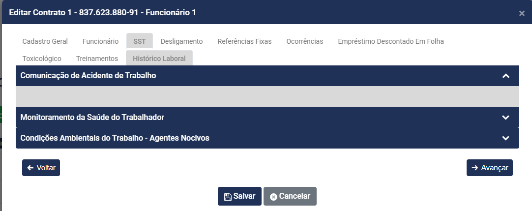 Esse campo será preenchido quando for cadastrada uma CAT para o Trabalhador
