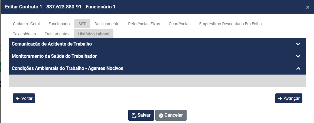 Esse campo será preenchido quando for Cadastrado os Agentes Nocivos para o Trabalhador