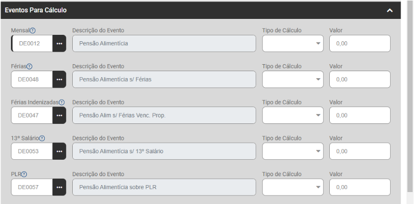 • Referência - quando o evento será calculado através de fórmula que utiliza a referência do mesmo